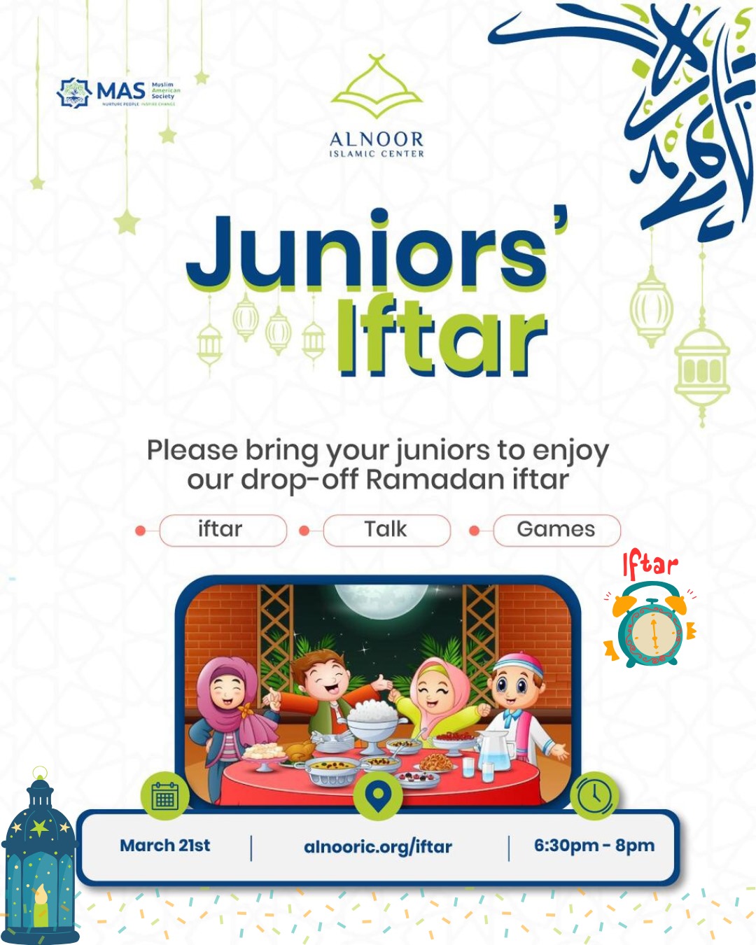 Get your junior to Join Us at AIC for iftar, talk, and activities on March 21st. | |